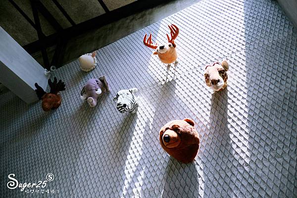 餐廳在二樓,沒有電梯,走上樓牆上還有很多可愛動物頭擺飾