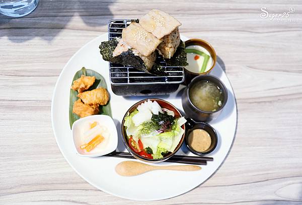 和食餐點包含日式飯糰、茶碗蒸、日式唐揚雞、百香果南瓜、味噌湯、和風鮮蔬沙拉