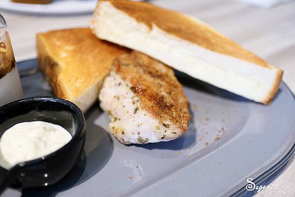 附上自製布里歐吐司外皮煎的微焦,吐司很香很好吃