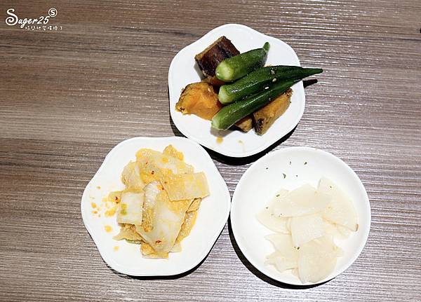 有地瓜、秋葵、泡菜、醃蘿蔔、青菜