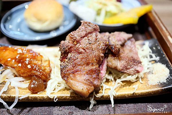 板腱牛排熟度剛剛好,外皮料理的微脆感