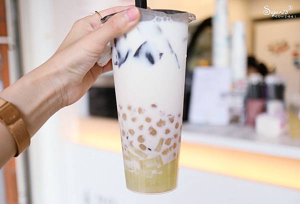 上面可以看到像咖啡店精緻的手法,最上層除了有奶蓋之外,還有撒上抹茶粉