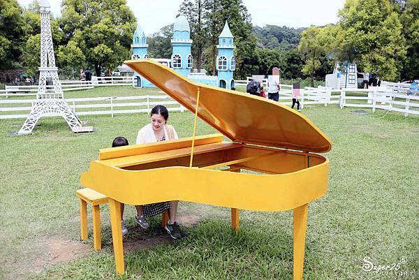 一大片草地,超好讓孩子奔跑的,有好多美美的裝飾很好拍:))