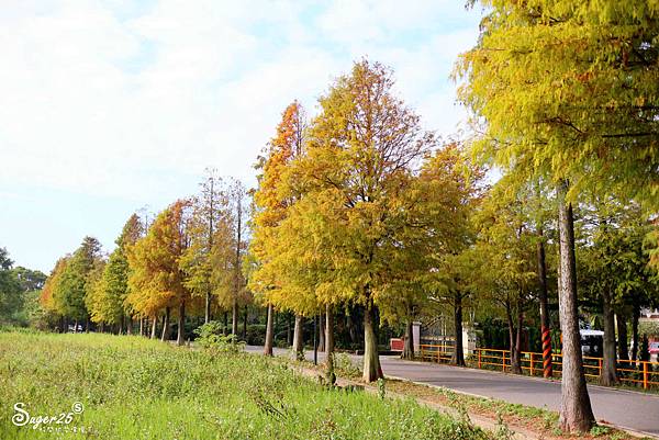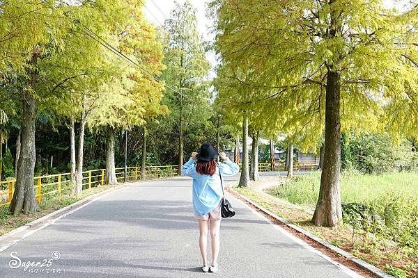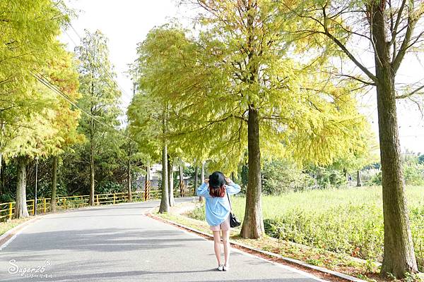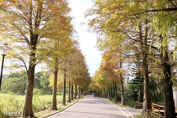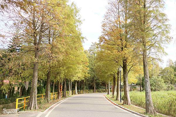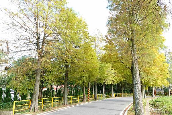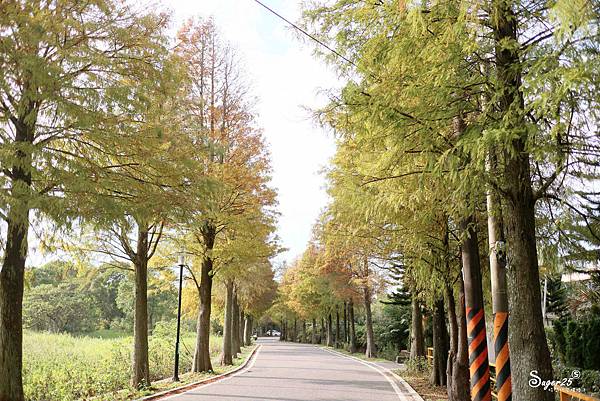 來到這邊要注意安全,這邊是用落羽松當道路兩旁的路樹,算是正常道路要注意來車