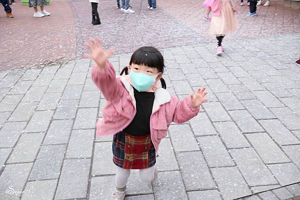不僅阿母很嗨~小妞也嗨到不行,在旁邊跑來跑去接抓雪踩雪說要摸雪 哈