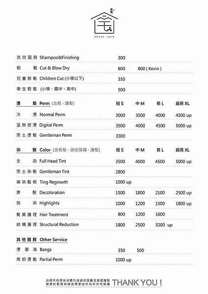 宅 House • Hair 讓我很喜歡的是,價格透明化一目了然
