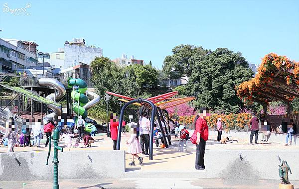 人潮太多就沒有一一拍照,有很多適合小孩的設施,像是沙坑、盪鞦韆、三層樓高旋轉溜滑梯...等