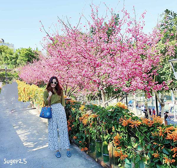 二月有櫻花,過年期間回娘家可以欣賞炮仗花順便賞櫻花
