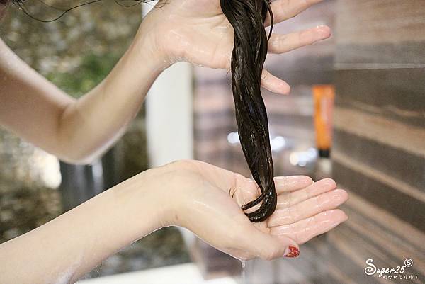 洗完頭髮髮質柔順許多,摸起來也比較不毛躁