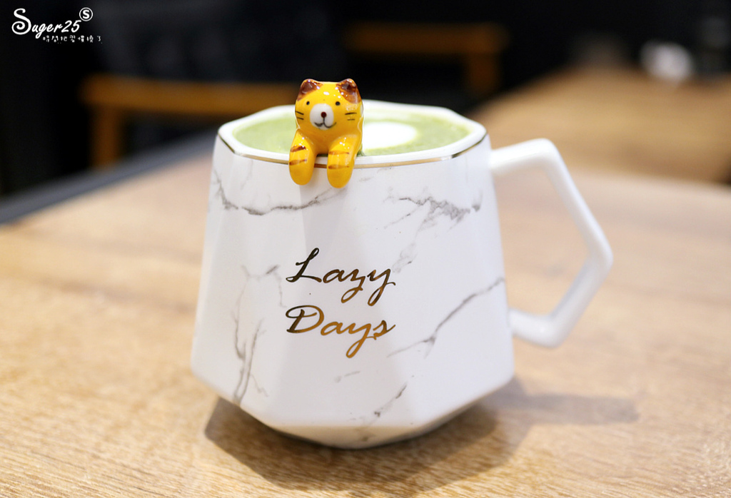 搭配貓貓的杯子超可愛的!!!上面有愛心拉花