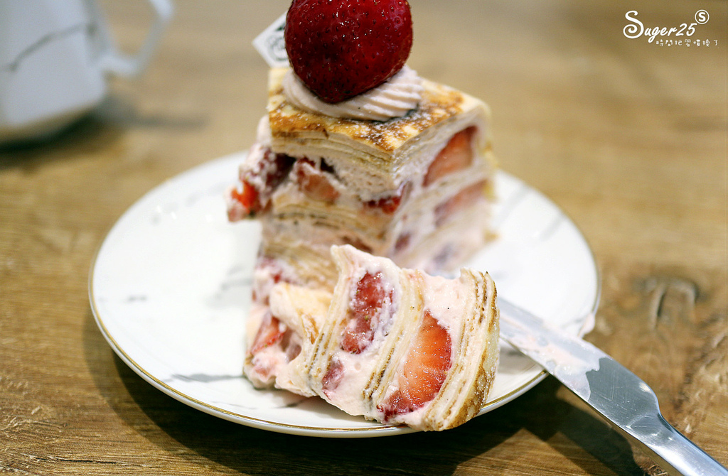 微甜微酸的草莓配千層蛋糕體很合拍,厚實又會有飽足感呢!