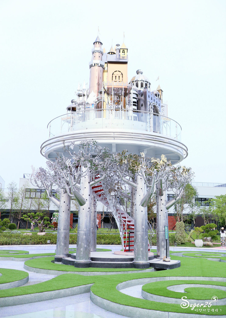 邀請旅美工藝家蔡爾平參與設計,在生命之樹造型上的鏡池上有個空中城堡,超歐風外型夢幻翻了