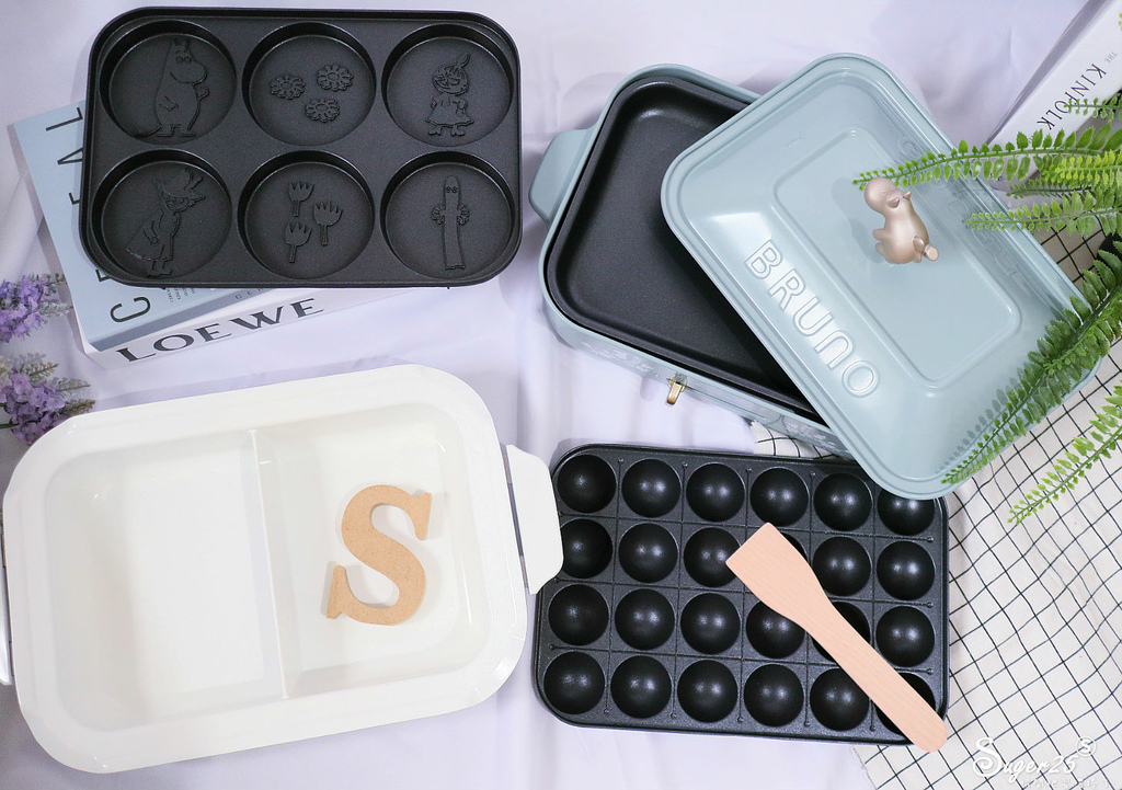 買 BRUNO嚕嚕米多功能電烤盤 主機就會送平板烤盤、章魚燒烤盤、嚕嚕米六格式料理盤
