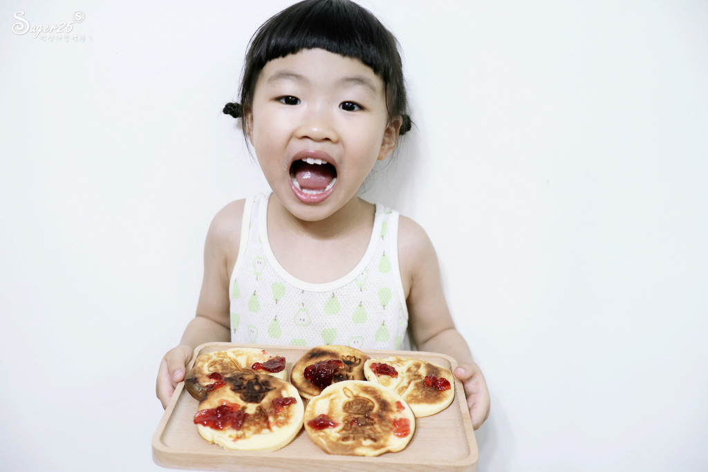 快速就變出迷人的嚕嚕米鬆餅早餐,小妞快速吃光光