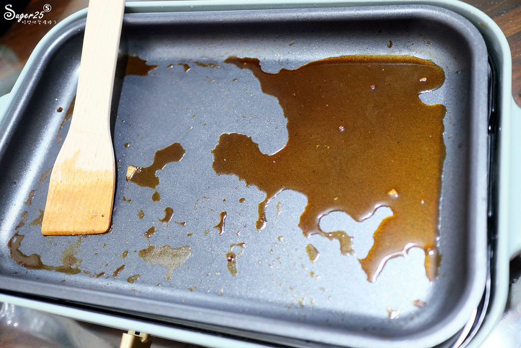 這天我們只用一點點肉,直接像烤肉一樣,放肉刷醬起鍋