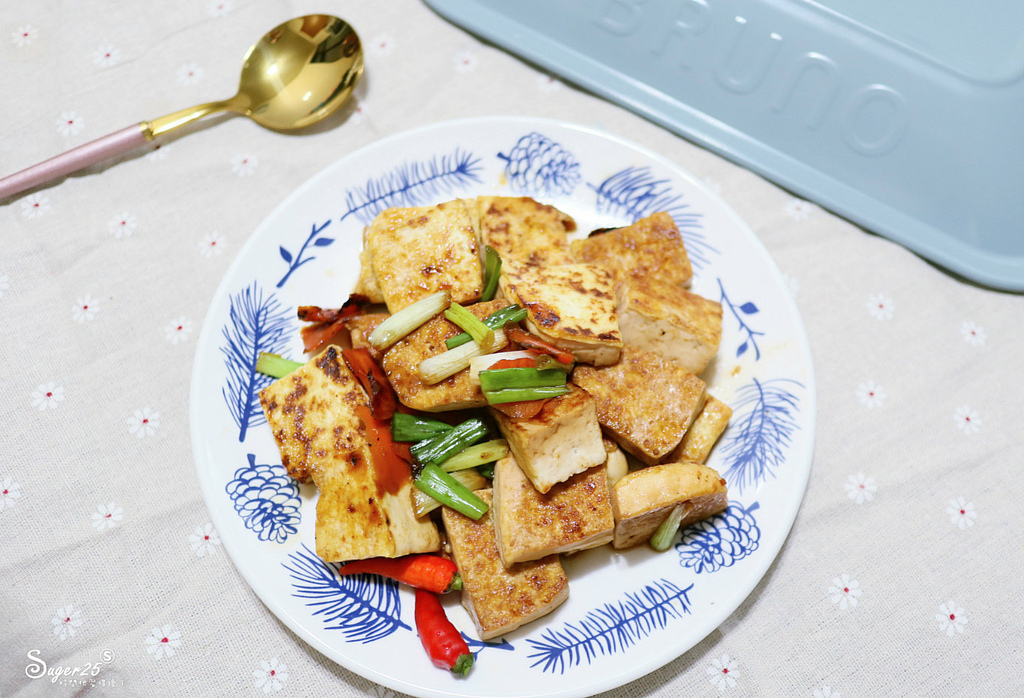 材料 : 豆腐、紅蘿蔔、蔥段、油、醬油、辣椒