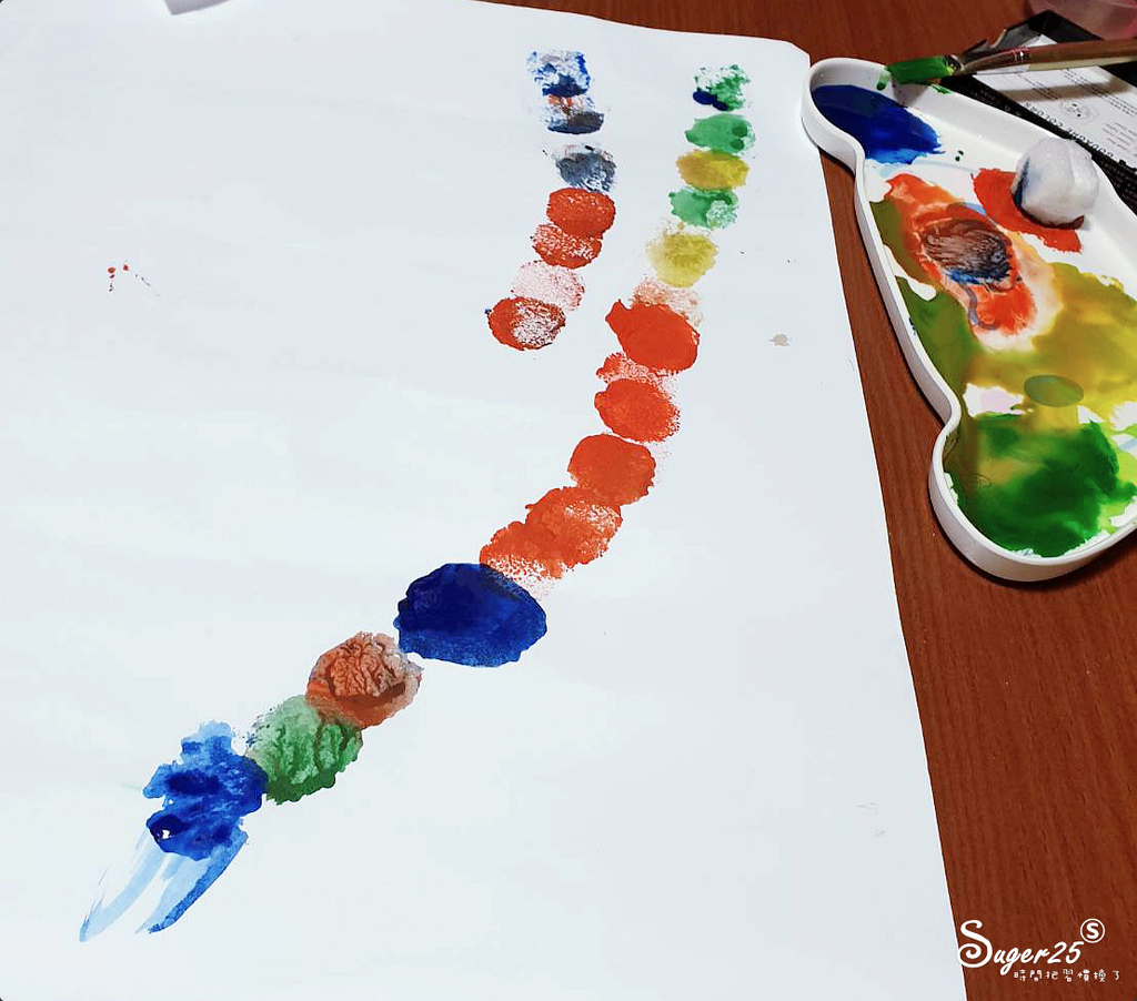 水彩 (可選兒童安全水彩) 剛好家裡有,我在一旁看著,不會讓小孩吃到嘴巴