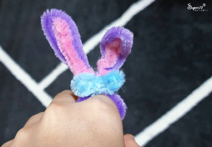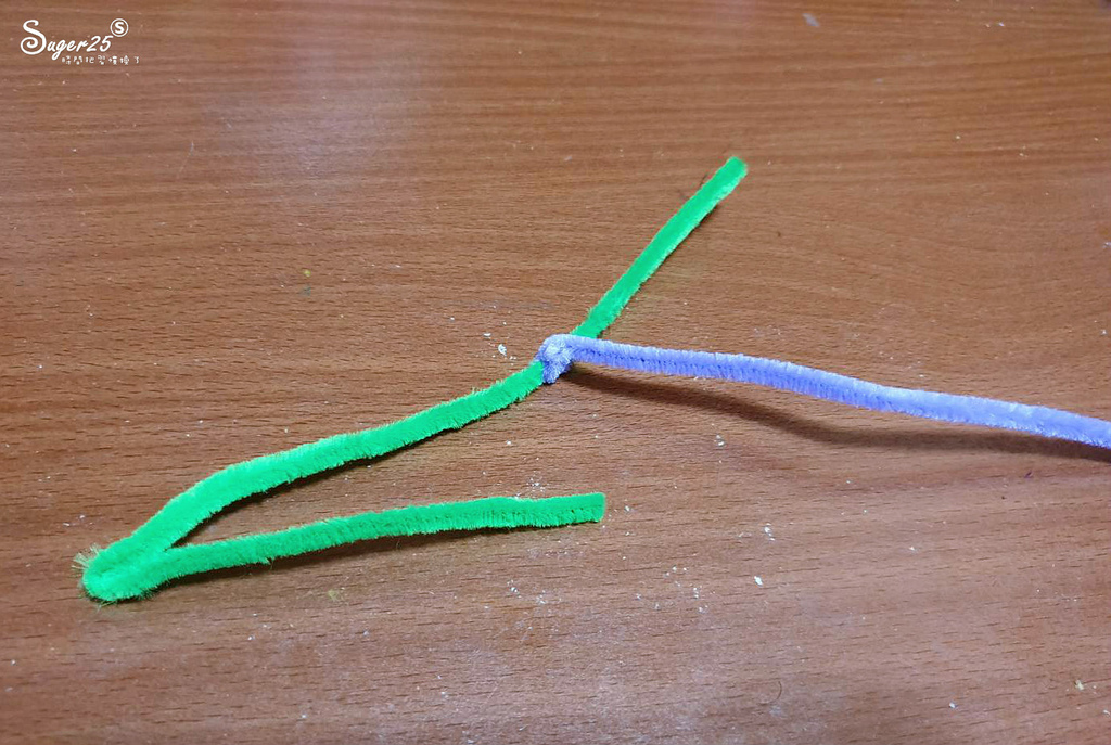 選綠色跟紫色,先纏繞一圈固定後,在讓小妞去繞