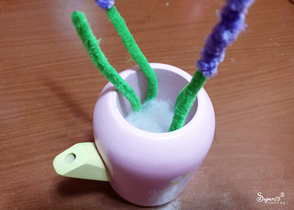 隨意拿小妞家家酒的玩具來當花盆,下面放入些棉花