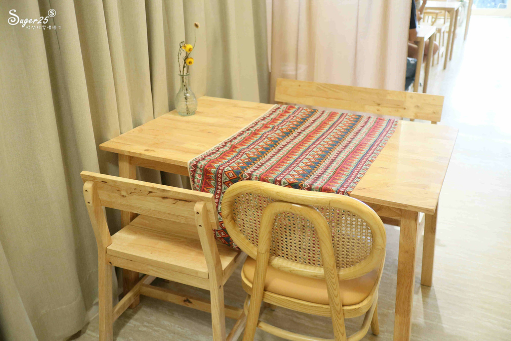 店裡布置以木頭大地色為主,桌椅以木頭為主