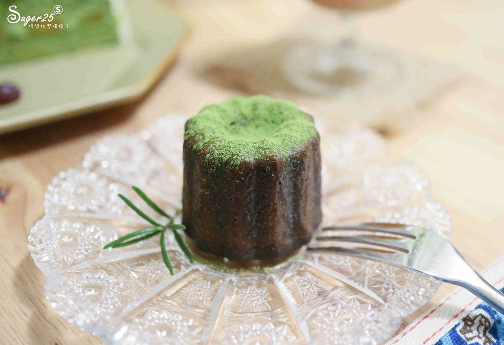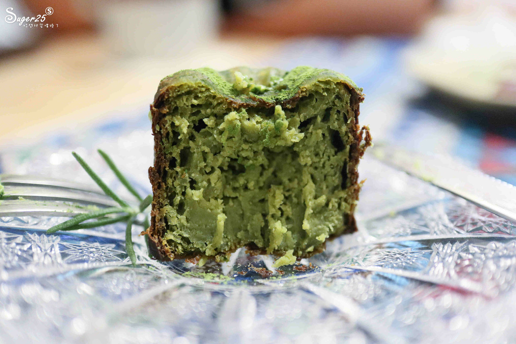 上面有撒上抹茶粉,切開抹茶色看了心情很好