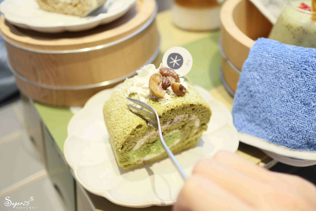 抹茶茶香為基底帶有栗子甜香,推薦搭配小山園抹茶,雙倍抹茶吃起來清爽中帶點抹茶香