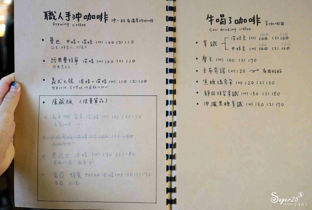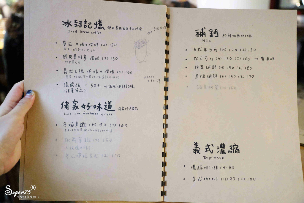 有自家烘培咖啡、各式飲品、手沖咖啡、茶、甜品、冰