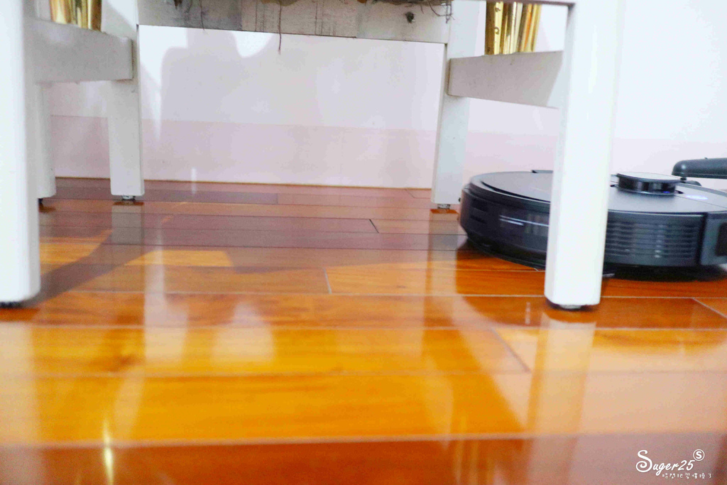 以往用掃把掃了又要再拖地,還要等地板乾,乾了感覺又會有點沙沙的...,因為這地板的障眼法