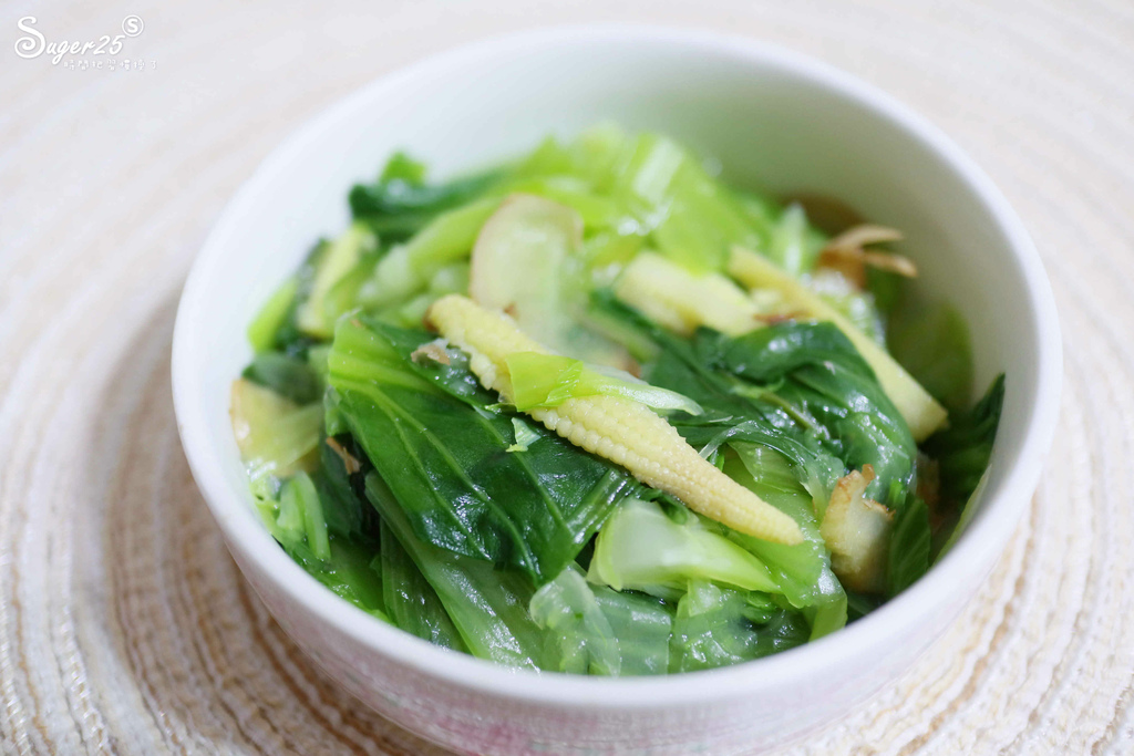 青菜也是很重要的一到菜,青江菜搭配玉米筍增添了些許口感,吃起來不枯燥好吃