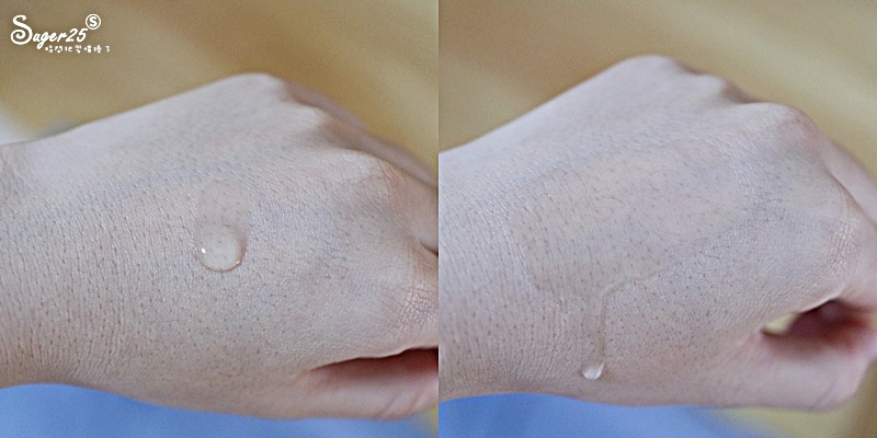 防蚊凝膠為透明水乳狀質地,相當的好推開