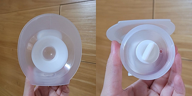 5)放進哺乳內衣,卡住下緣即可,記得乳房要與喇叭罩完全貼合無縫,才能達到最佳的擠乳效果
