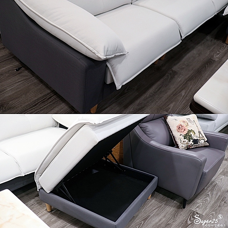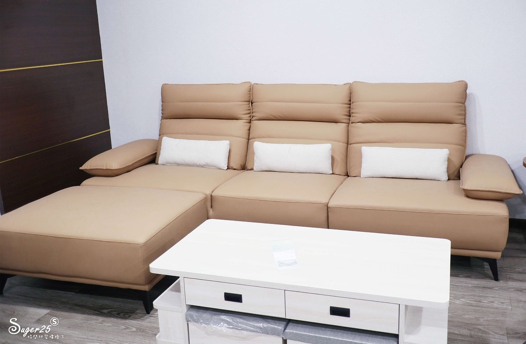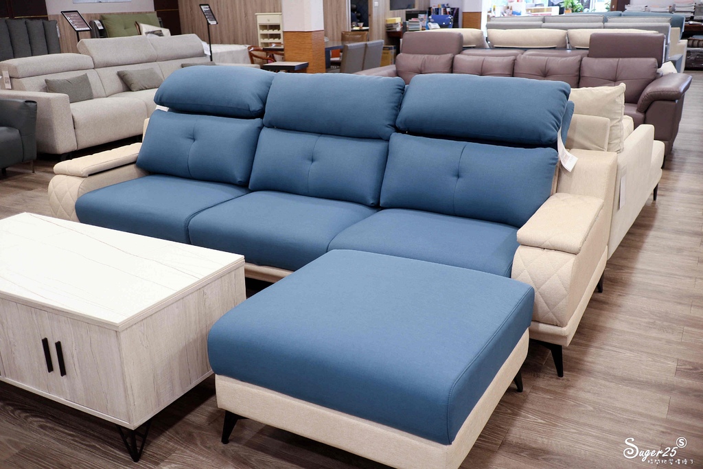 以下這組是今年三月份才推出的最新款沙發,它是三人座沙發+腳椅組成的L型沙發組,L型的椅子是可以任意移