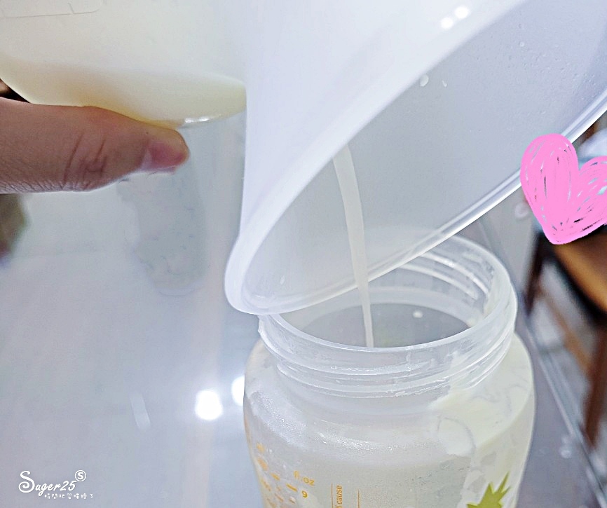 要喝的時候,用奶瓶裝好,加熱就可以喝了