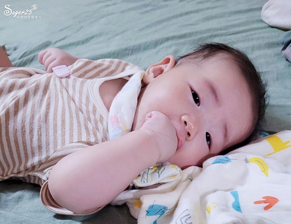 Nia寶寶三個多月摟!開始一直流口水,愛上吞拳頭的咬咬期