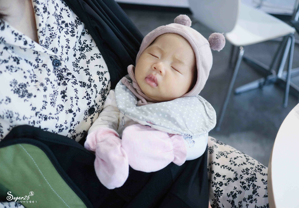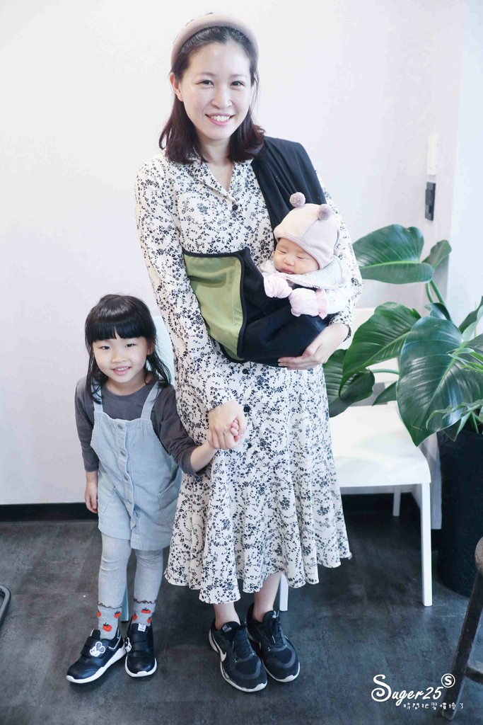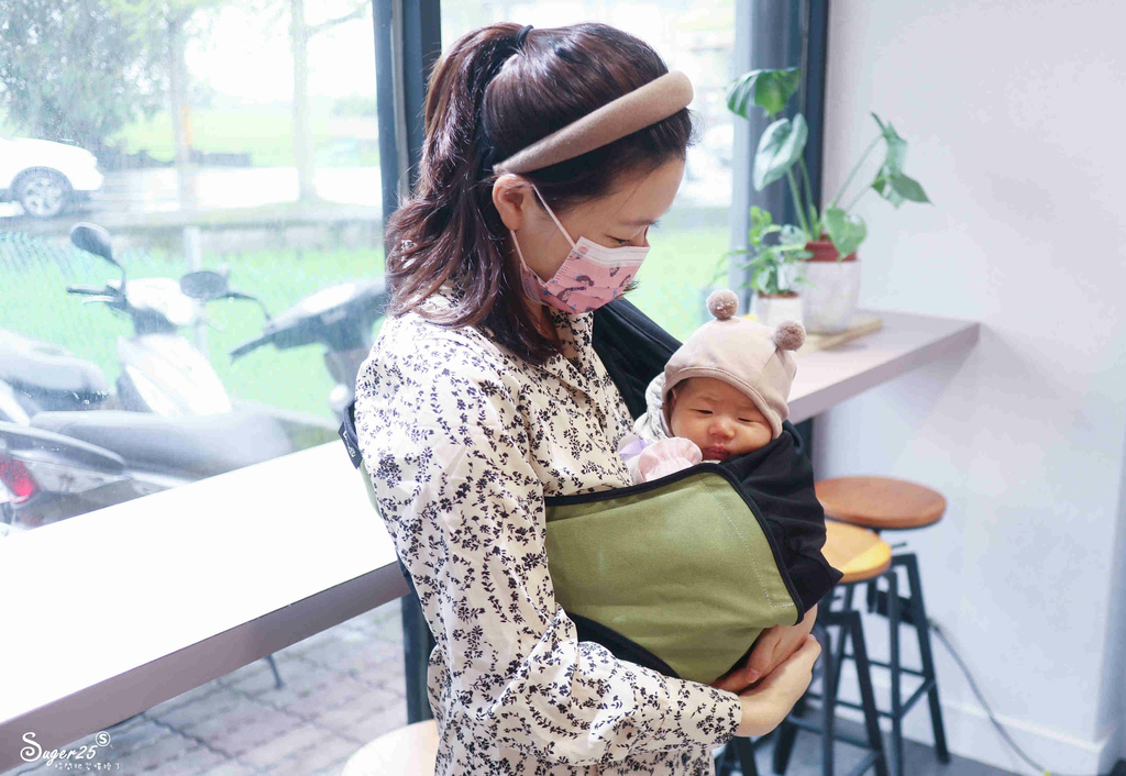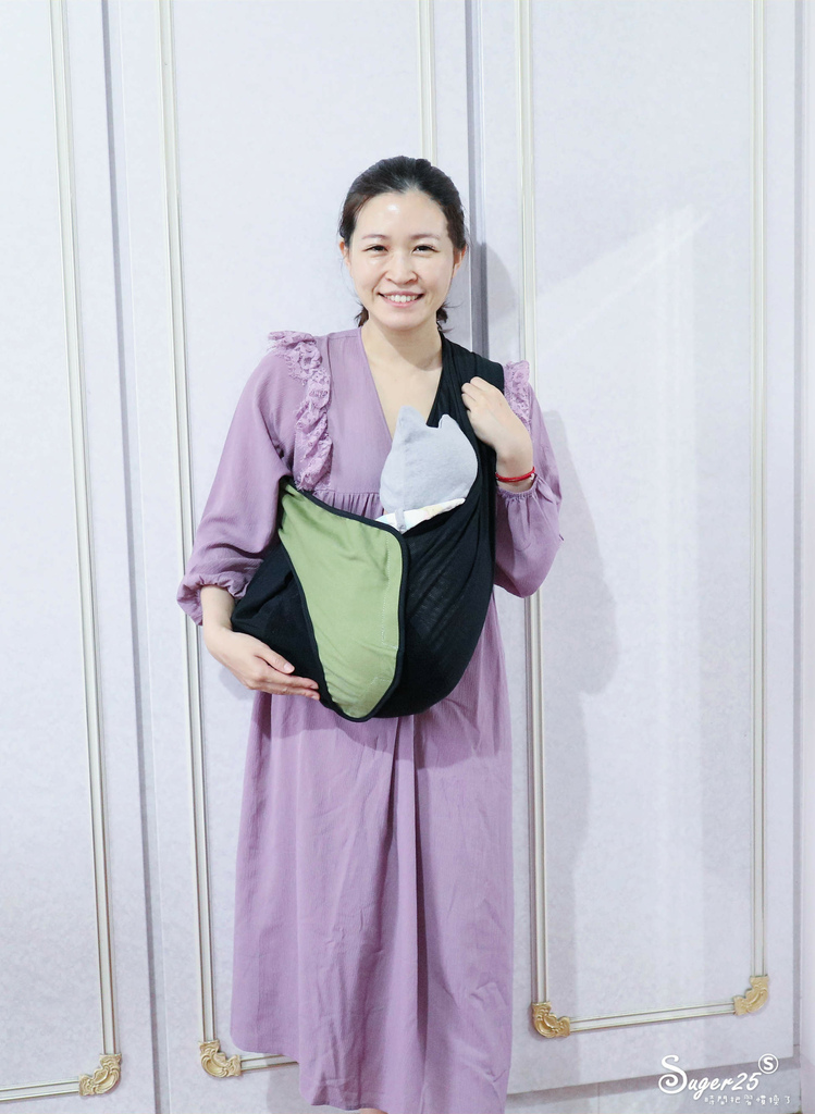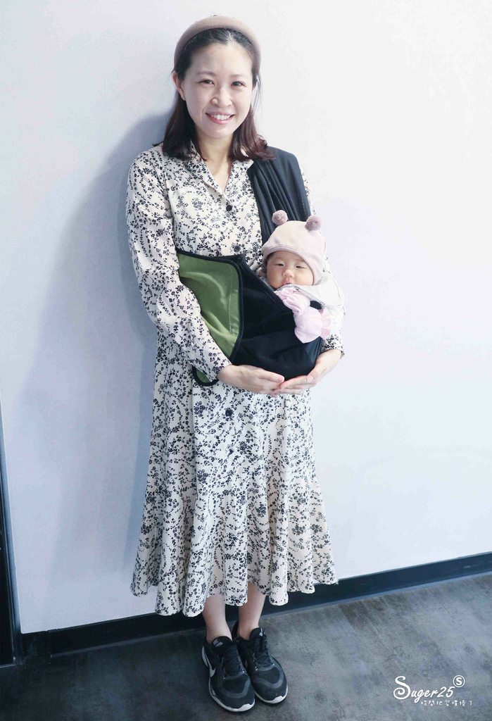 Nia比起姊姊比較有重量感 哈,抱久手會很痠,這時候揹巾就可以派上用場了,在選擇揹巾上,蠻少新生兒可