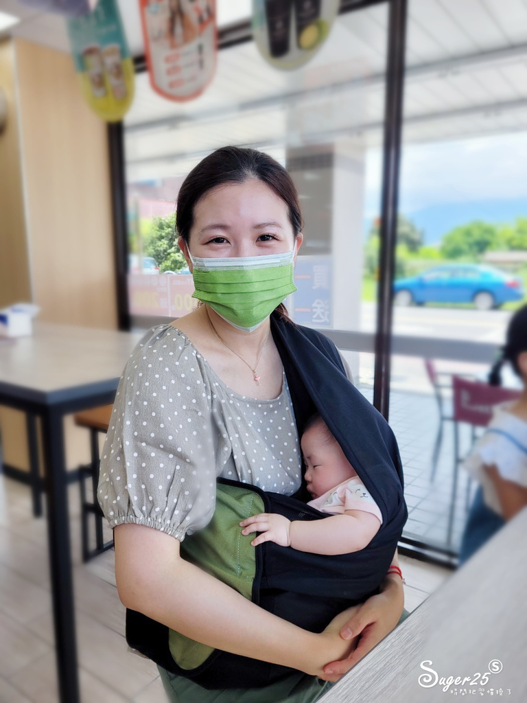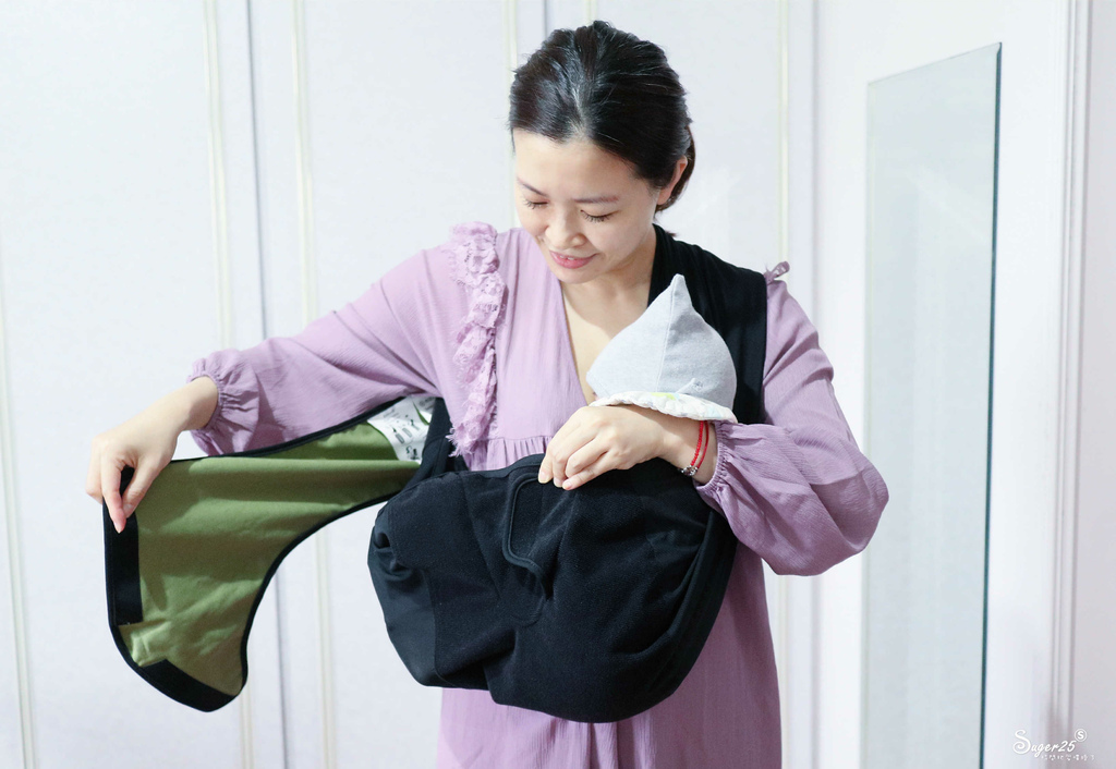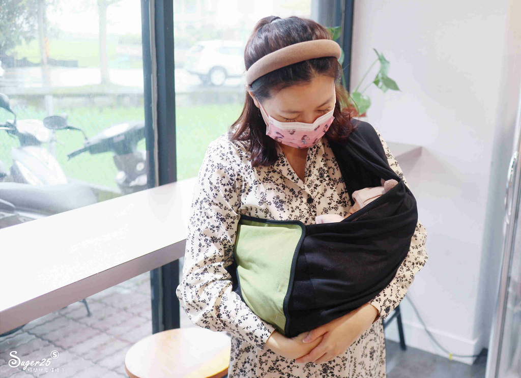 一個人沒有後援的時候,背巾就是很大的幫手,讓我不會手忙腳亂,工作也可以順利完成