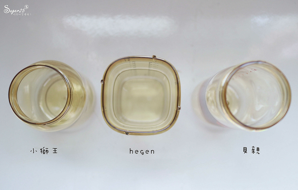 *PPSU濃度 hegen>小獅王>貝親 (奶瓶外觀上顏色越黃金色濃度越高)