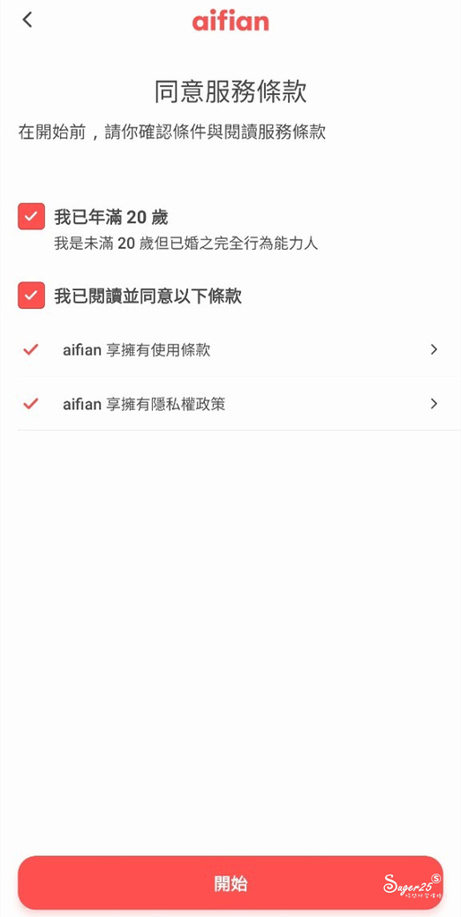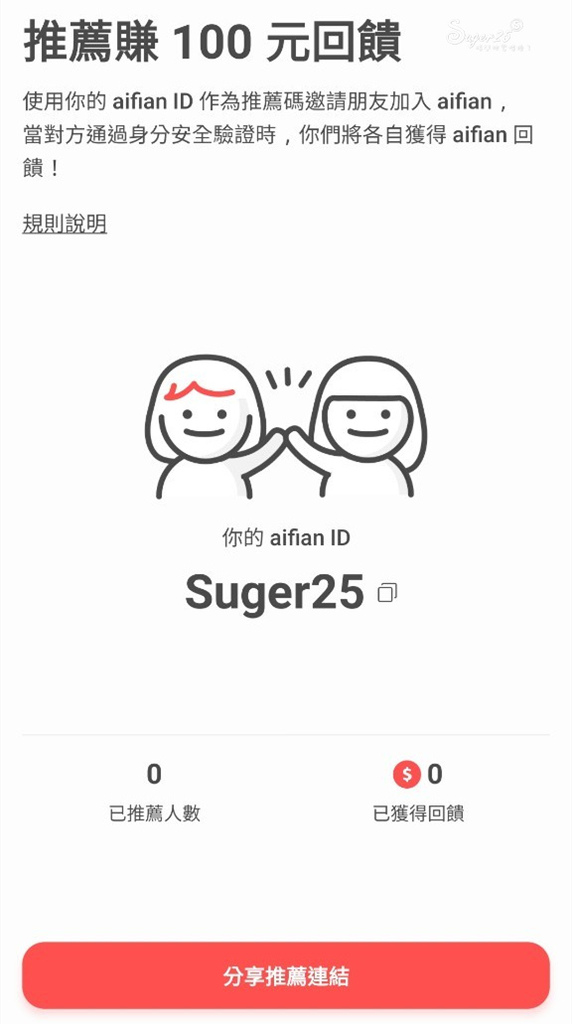 註冊時輸入aifian推薦碼:suger25,並完成身份安全驗證