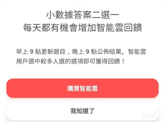 在 aifian 享擁有生態系裡,你還可以透過各種aifian互動賺回饋,像這小數據還蠻簡單的二選一問答