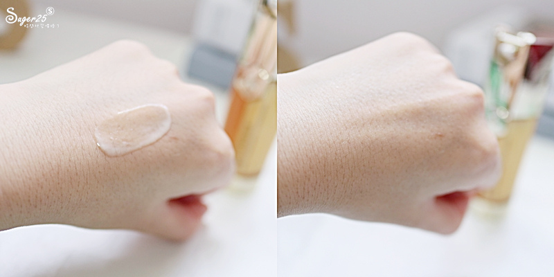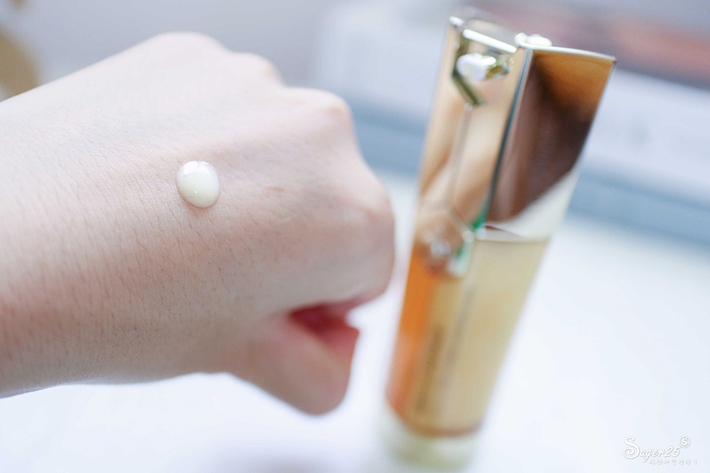 按壓出來為黃色精華乳狀,很好推勻又好吸收