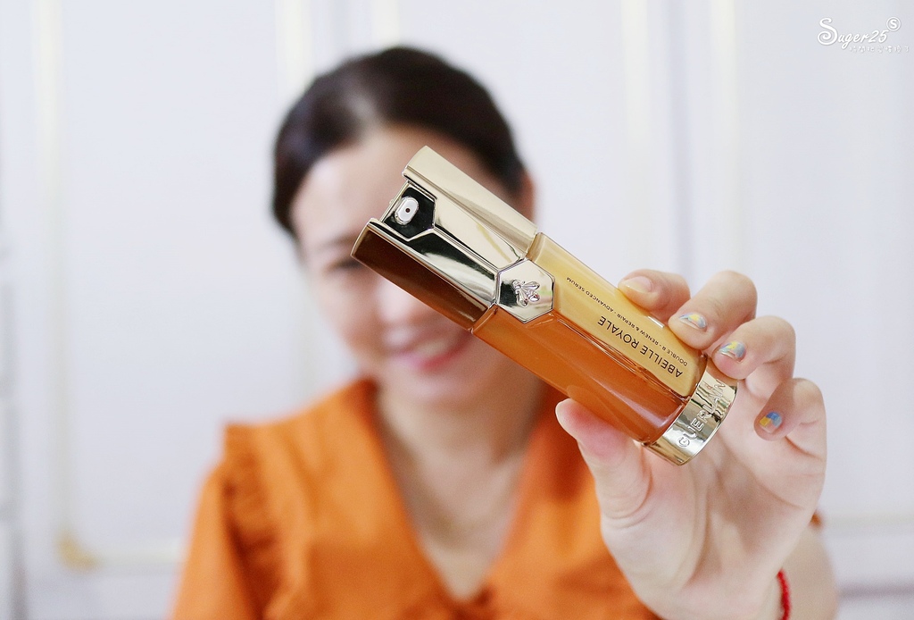 皇家蜂王乳系列在改版後整個金光閃閃,時尚icon的蜜蜂浮雕前方跟上方都可以看到,擺在化妝台上就是一個迷