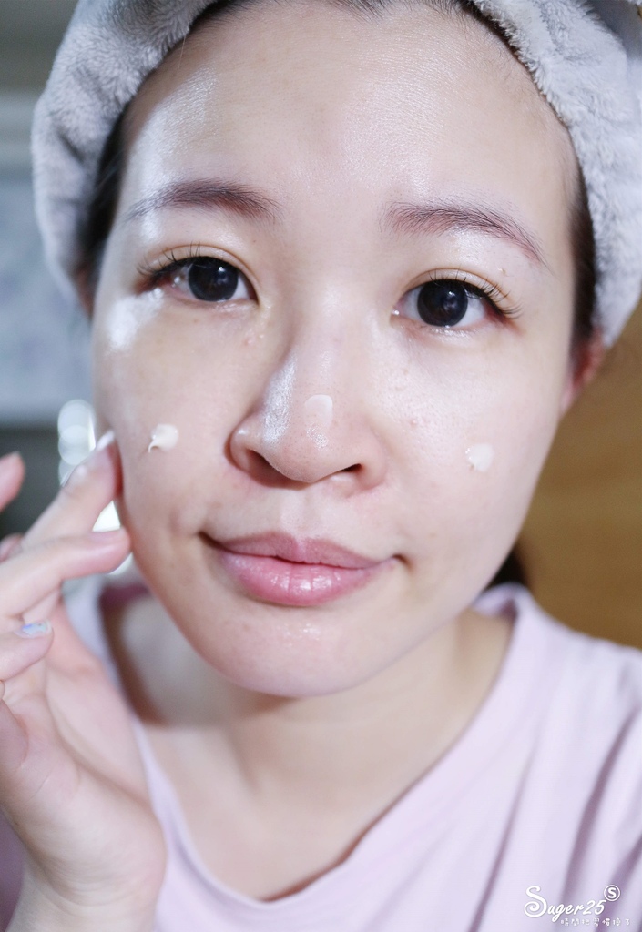 白色乳霜質地蠻好推開,而且不黏膩吸收的很快