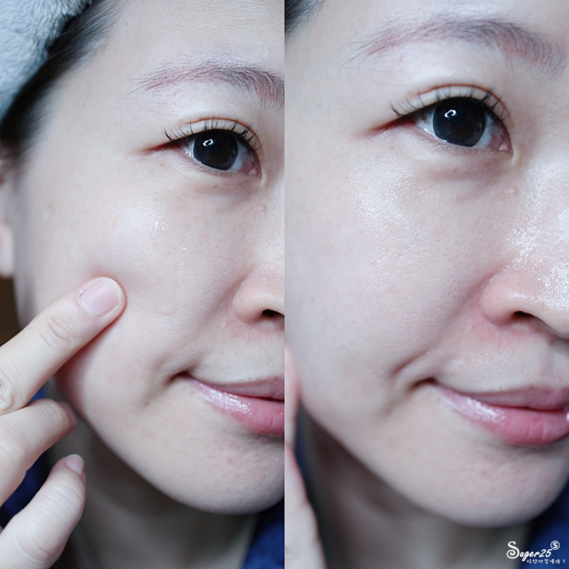推開後很快就吸收進去了,肌膚可以明顯感受到從很乾很渴認真的在喝水的狀態,肌膚光澤透亮水潤保濕大提升