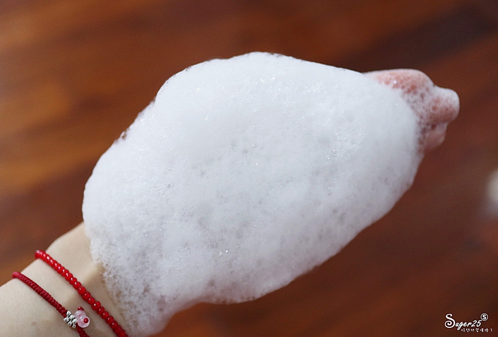 用溫和型兩面活性劑,用水就可以搓揉出很綿密的泡泡