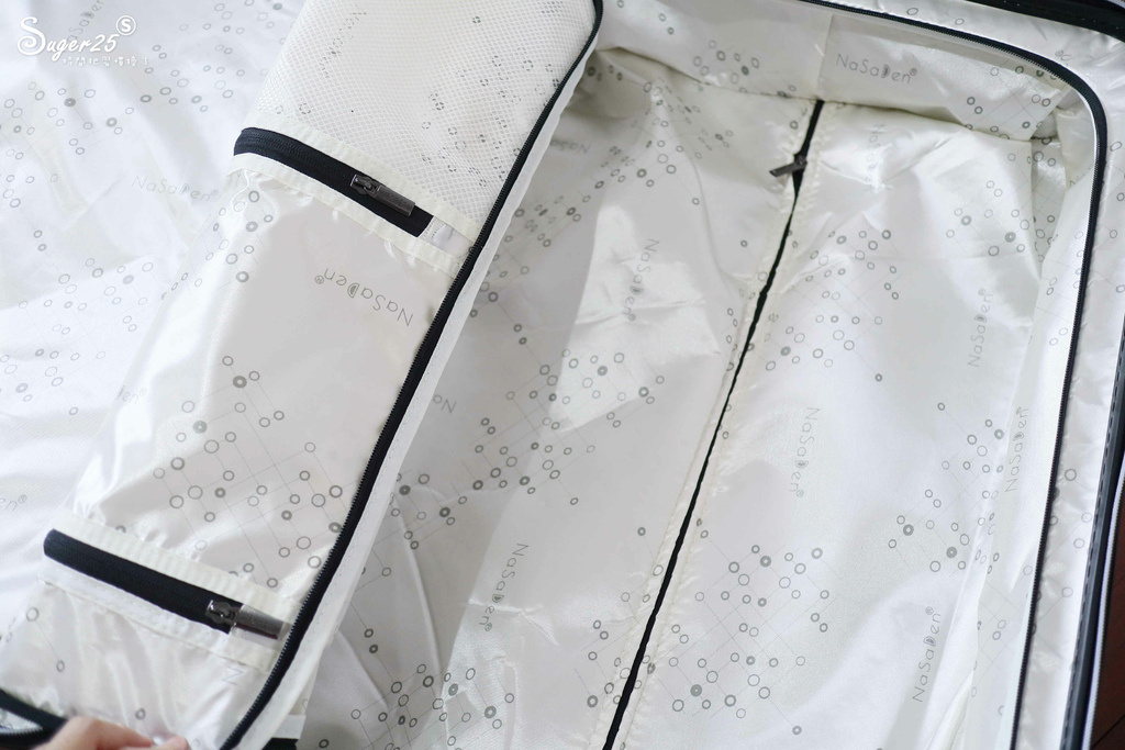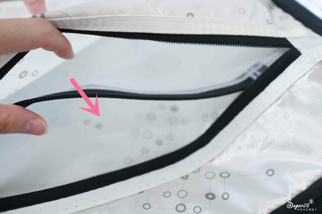 超貼心的防水設計耶!!!可以放些盥洗用品或是保養品之類的,如果不小心外流出來也不會搞到整個行李箱都遭殃