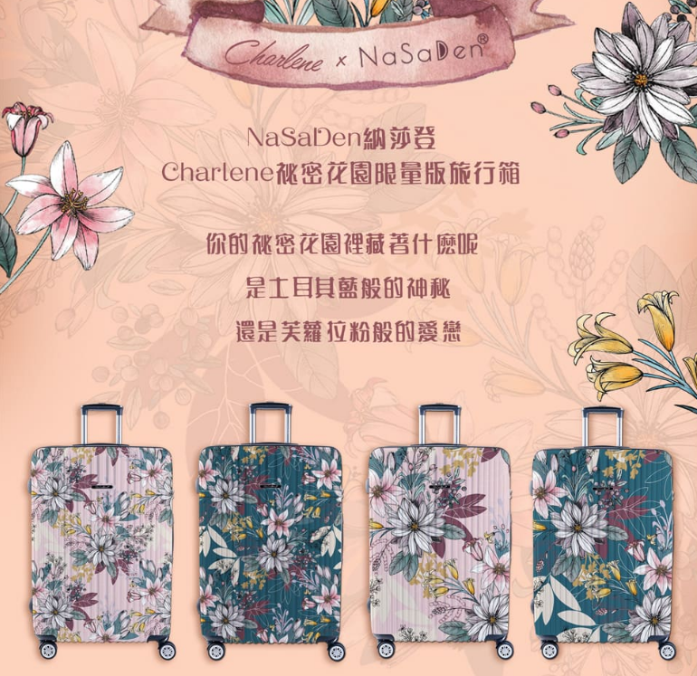 #NaSaDen納莎登新無憂 #行李箱推薦 #Charlene祕密花園聯名款 #印花拉鍊行李箱 #行李箱 #出遊行李箱