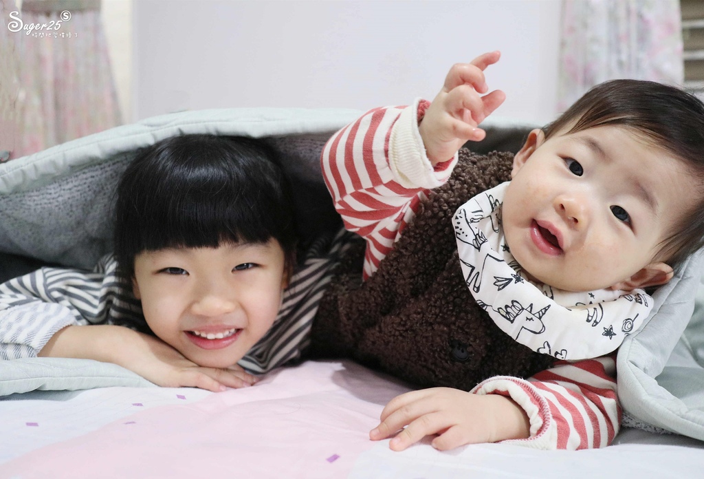 寒流來,雙寶還喜歡在棉被裡玩躲貓貓,說這樣玩很溫暖