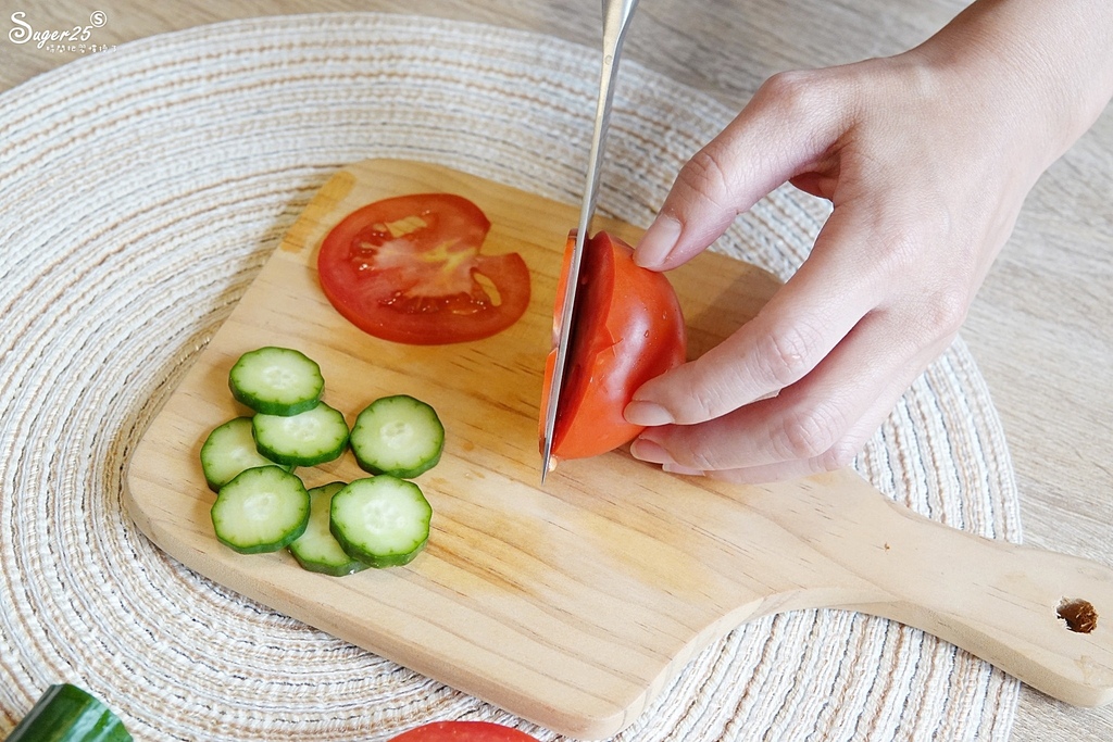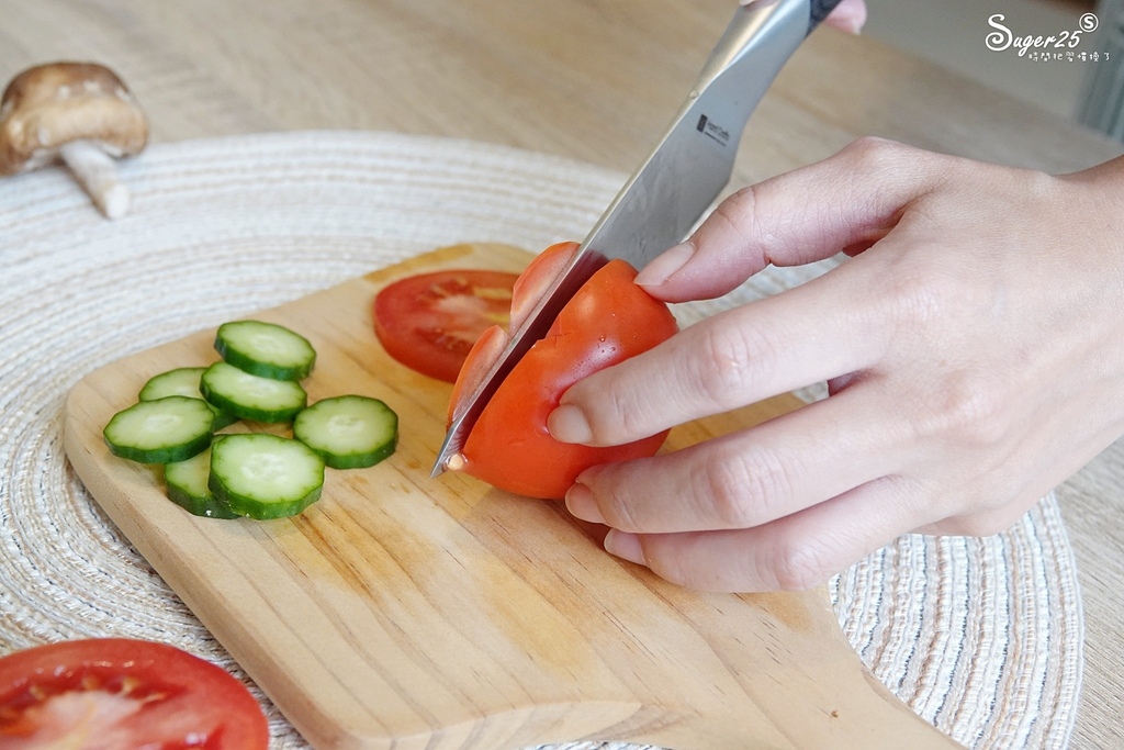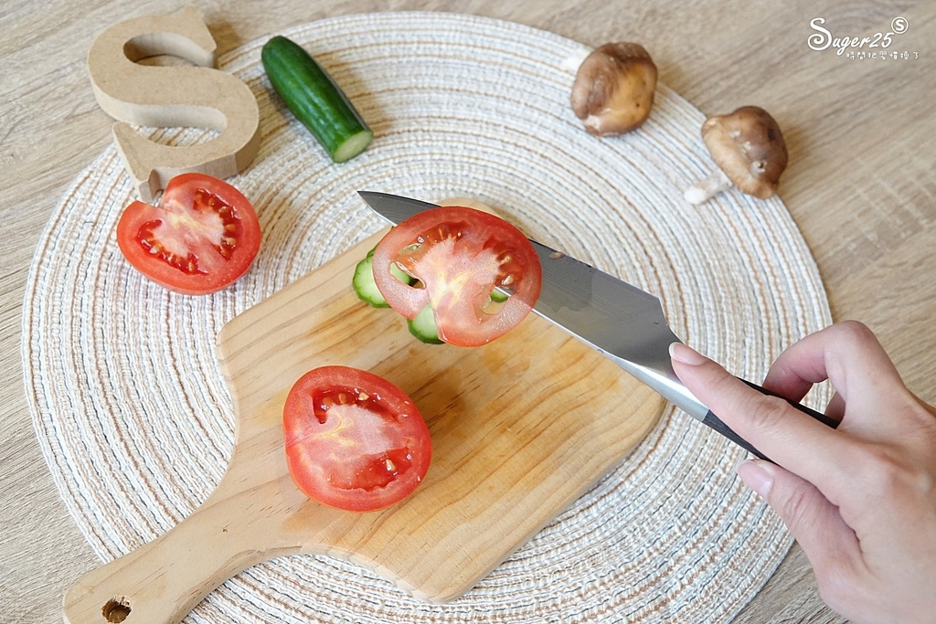番茄軟軟的每次都被我切到很噁心 哈 換了這把REO大馬士革萬用刀後,切薄片也沒問題