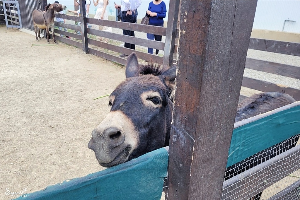 之前帶小妞去別家農場,羊駝超兇一直衝過來要啃食食物,小妞嚇死了