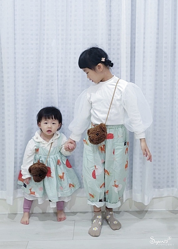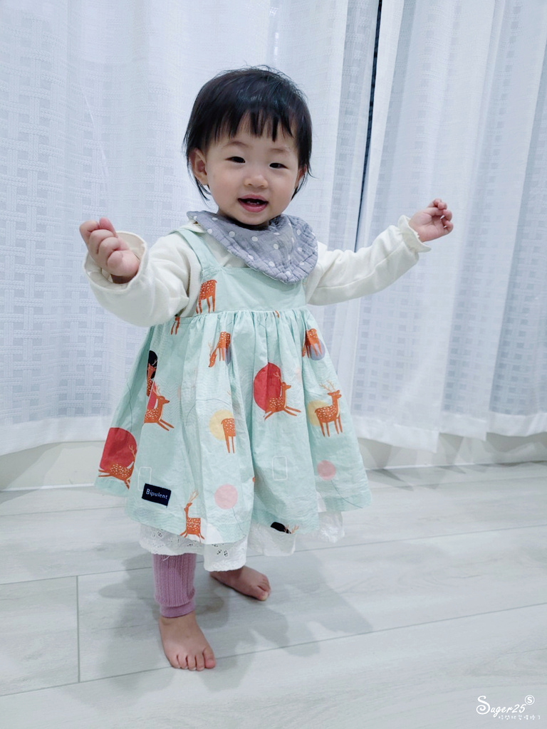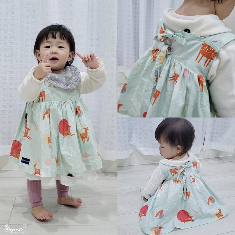 穿起來整個就像是個小公主,裙襬有兩層,跟一般吊帶裙不同,長度到膝蓋,爸爸免擔心的長度 哈